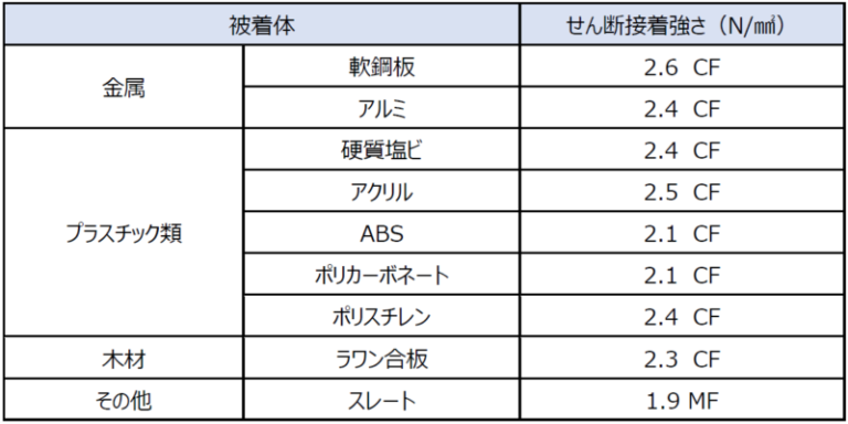 CF︓接着剤の凝集破壊 MF︓被着材の材料破壊
