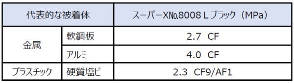 ※上記以外の各種被着体についてはテクニカルシートをご確認ください