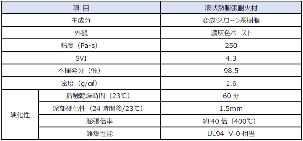 1成分形変性シリコーン系 液状熱膨張耐火材 (開発品)