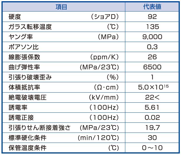注型用途を中心とした性状を有し、耐熱性(耐リフロー性)、耐熱衝撃性、耐薬品性に優れた接着剤です。
