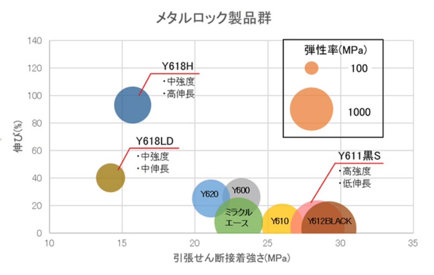 セメダインのメタルロックは幅広い物性を持ったラインアップを取り揃えております。また、少量規格から大容量規格にも対応しており、お客様のご要望に応じた提案が可能です。