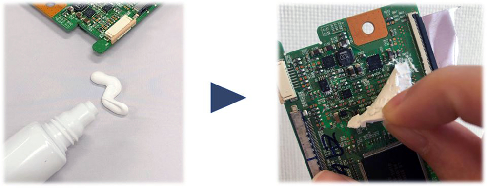 部品と部品の間の空隙にもしっかり追従でき、効率的に放熱性能を引き出すことが出来る。