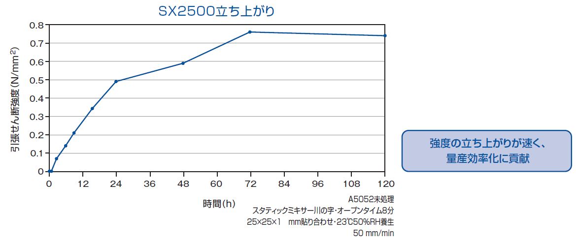 - 常温速硬化タイプで、ラインスピードの向上に寄与します