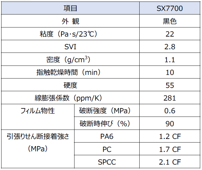 - エンジニアリングプラスチックほか、さまざまな材料への良好な接着性を有します